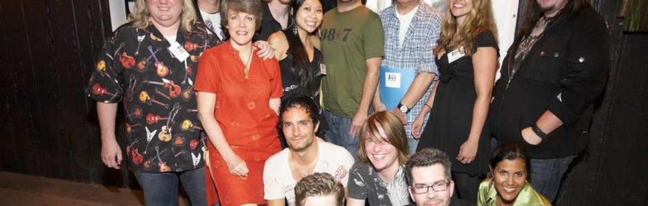 Photo: Winning band Starving For Gravity (SFG) with talent judges and LAMN Jam staff. L-R (standing, back row): A&R wizard Tom Zutaut, SFG’s Caleb Fritel, LAMN President Tess Taylor, Team LAMN’s Mark Allee and Winnie Jow, 98.7-FM’s Local Music Director Darren Rose, VP of Emmis Radio Properties and PD of Power 106-FM Jimmy Steal, Team LAMN’s Shannon Brammer, SFG’s Brad Kovar. 2nd row: SFG’s Brett Lindenberg and Lucas Holter. Seated: SFG’s Richard Nash, Virgin Megastore Product Manager Bob Bell and Team LAMN’s Elisa Taylor. Another fine photo by Justin Winokur.